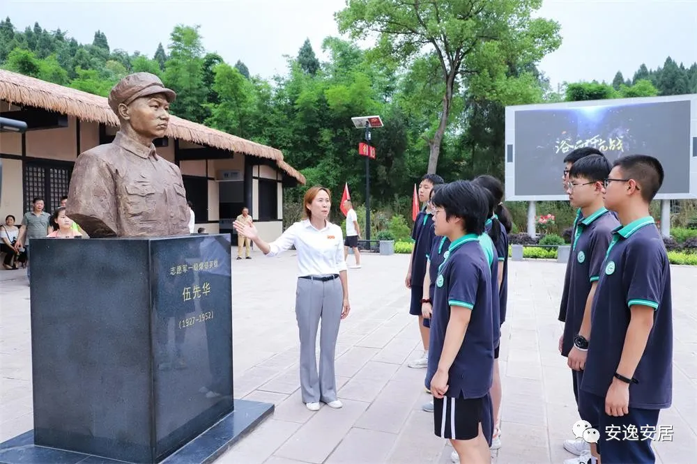 在伍先华旧居,除了来自川渝旅行团的游客,还有射洪绿然国际学校初中部的部分同学,他们在副校长李女士的带领下,通过聆听红色故事,参观珍贵照片、文献资料、历史实物,追忆伍先华烈士的革命往事。李女士说:“通过此次活动,让学生认识到我们现在的生活来之不易,在新时代要传承红色基因,抵制懒惰、自私和消极思想,努力学习,继承我们党的优良传统。”