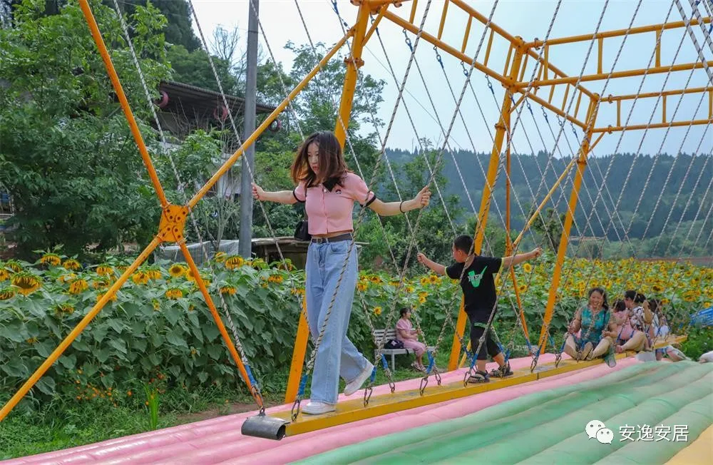 在七彩明珠花谷奇缘,成片的向日葵正值盛开之际,放眼望去,金灿灿耀眼的花朵竞相绽放,勾勒出一幅美丽画卷,吸引了不少游客及摄影爱好者前来观赏。“这一次成都来了很多游客,大家对这里山清水秀的风景非常满意,我们回去后会帮忙宣传、推广。”游客宋女士说。